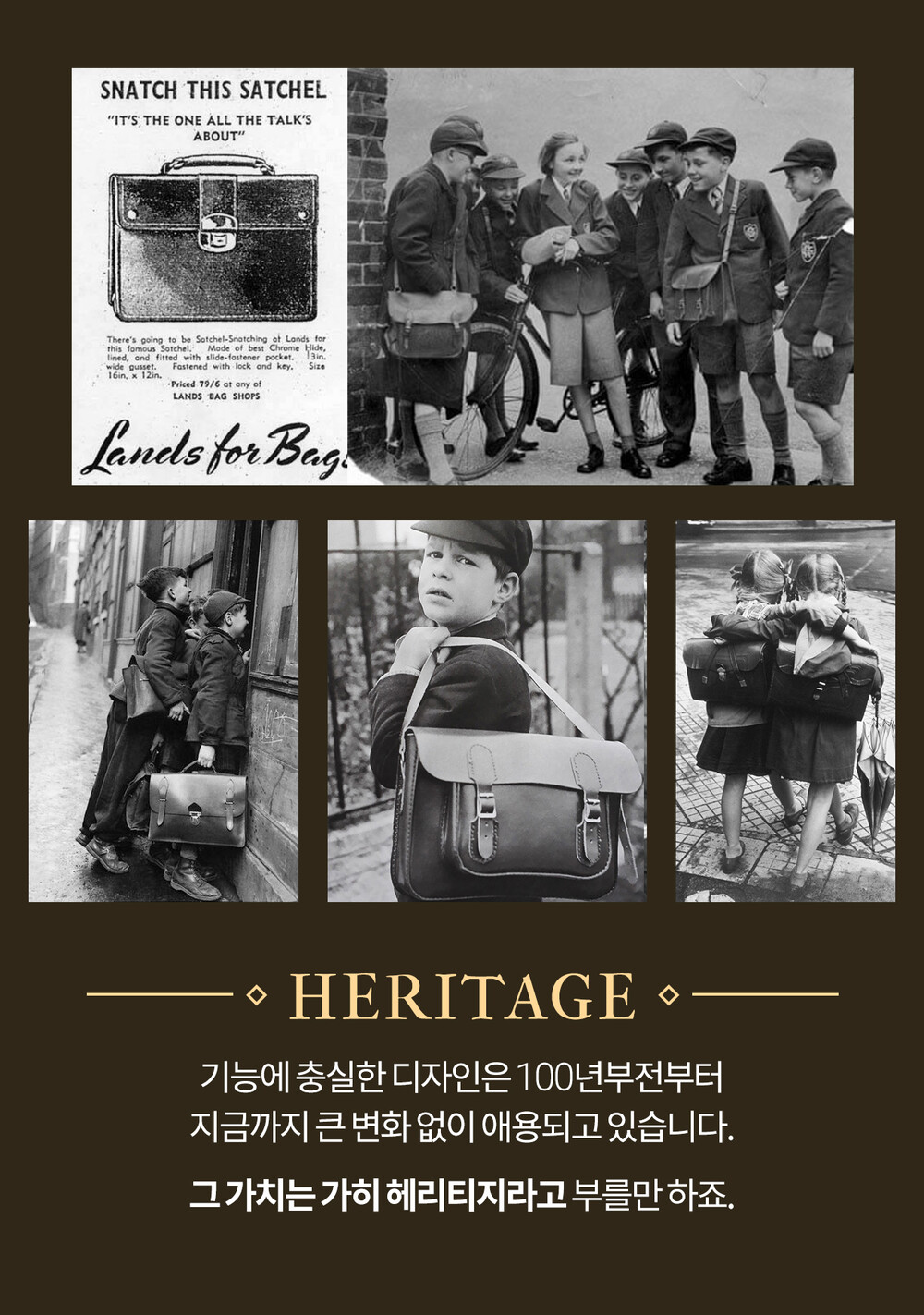 헤리티지사첼은헤리티지프로젝트에서 시작된 고품질 클래식을 합리적인 가격에 제안하는 프로젝트입니다. 시간이 지나도 변하지 않는 디자인을 만듭니다.