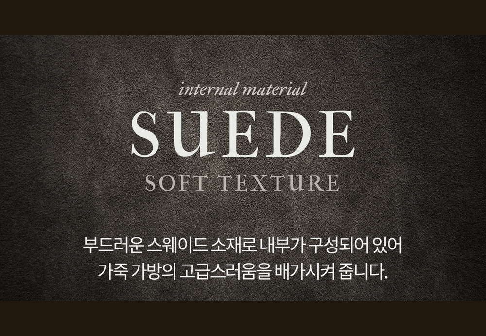 스웨이드 안감: 부드럽고 고급스러우며 편안함을 위해 디자인되었으며, 넉넉한 내부 포켓이 있어 정리가 쉽습니다.
