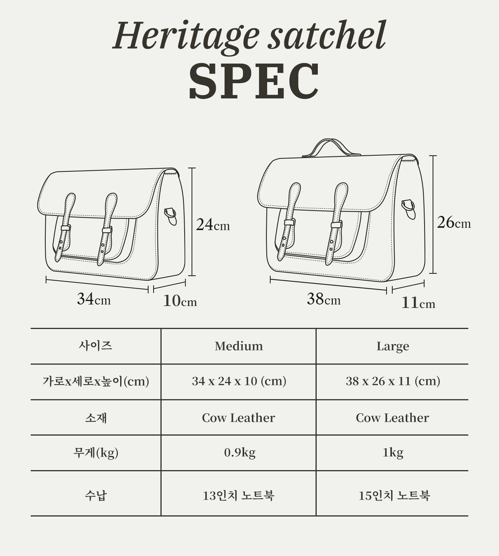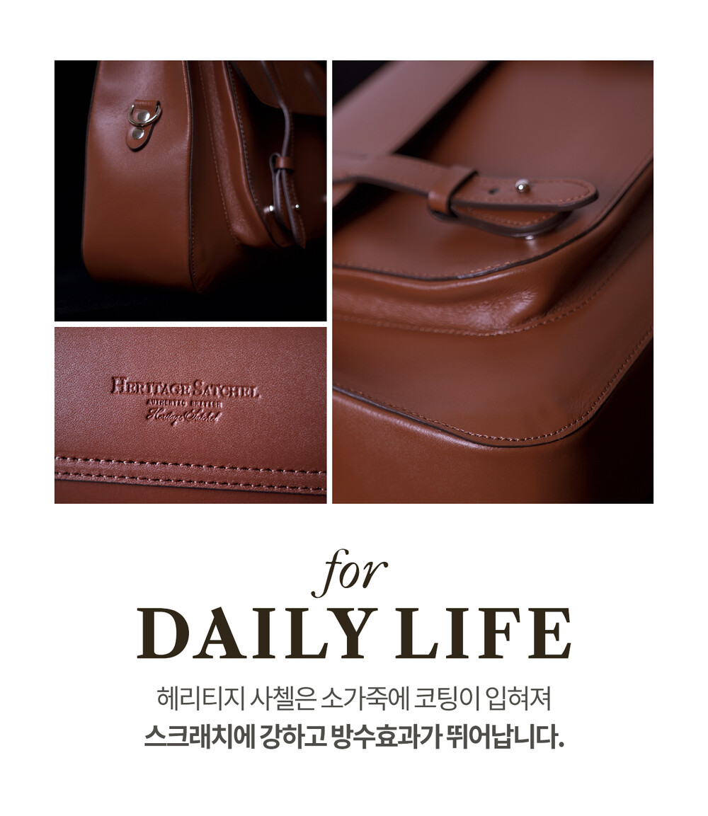 <헤리티지사첼>은 코팅된 가죽과 최적화된 구조 설계로 '가볍과 관리가 편한 가죽가방'을 완성시켰습니다.